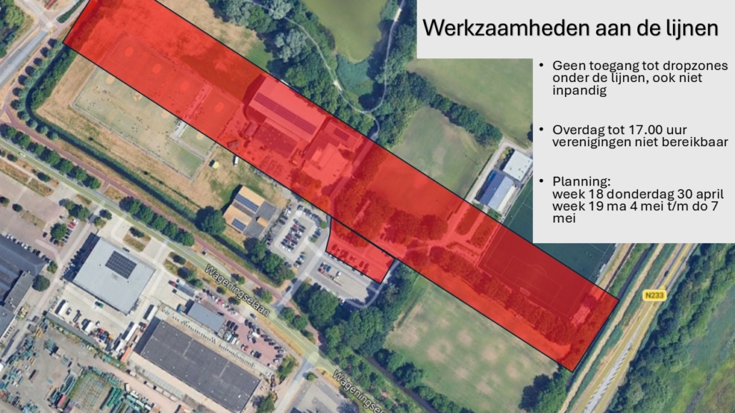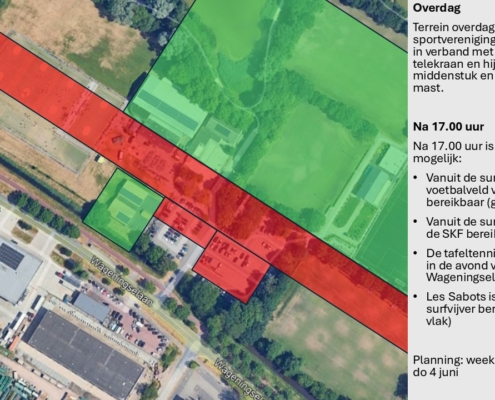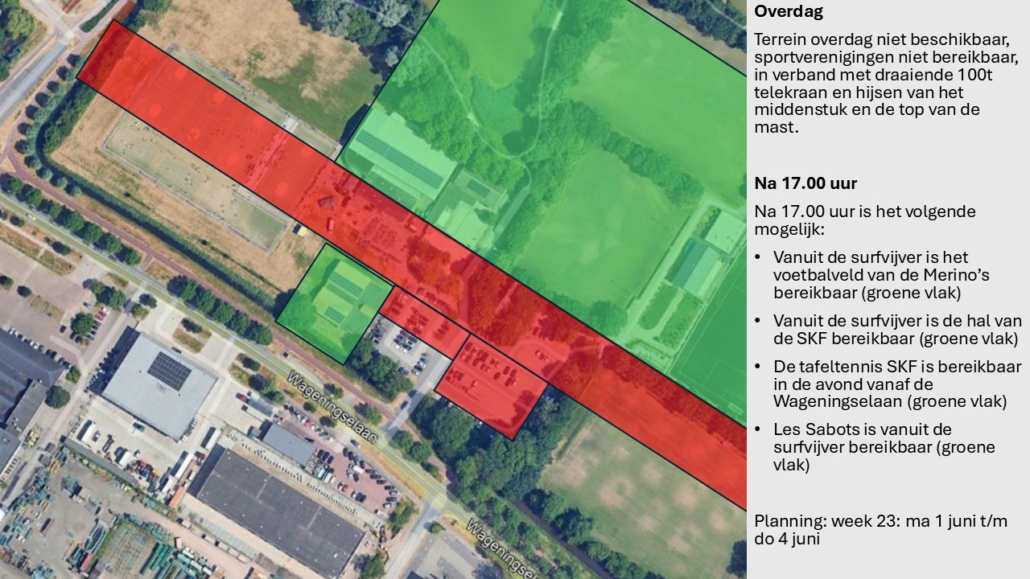 Het clubgebouw is die weken tot 17.00 uur niet bereikbaar, na 17.00 uur is het clubgebouw wel weer toegankelijk.