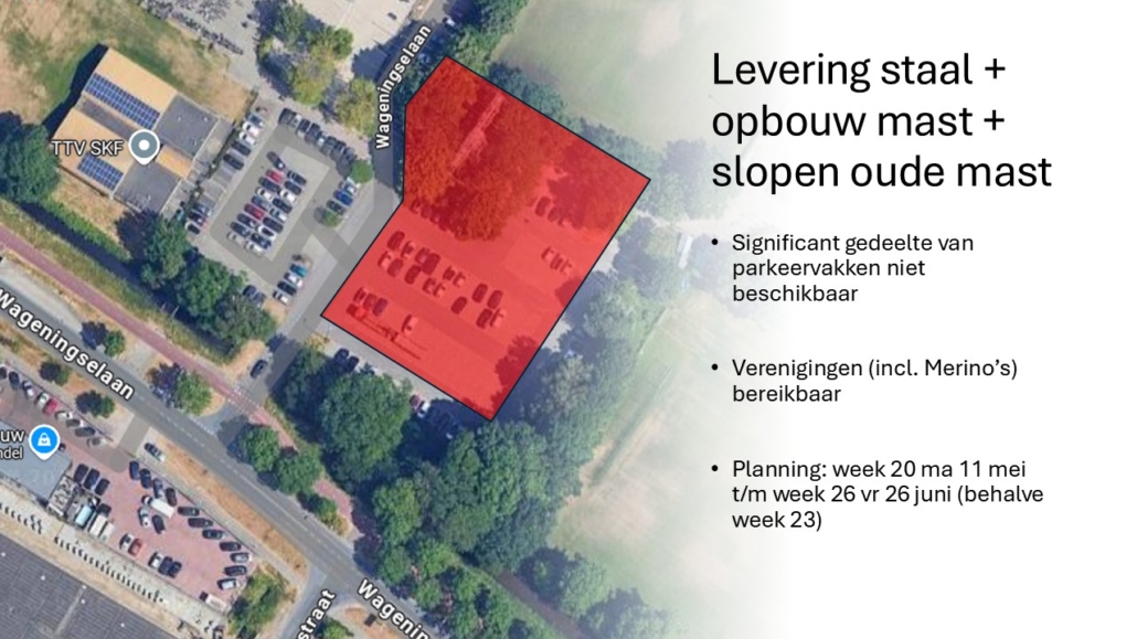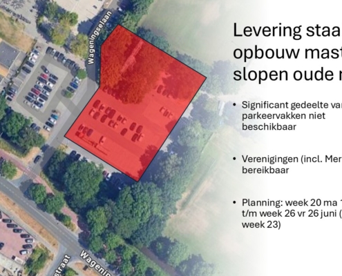 Vanwege werkzaamheden aan de elektriciteitskabels boven het parkeerterrein zal ons clubgebouw op de volgende data overdag niet te bereiken zijn:
