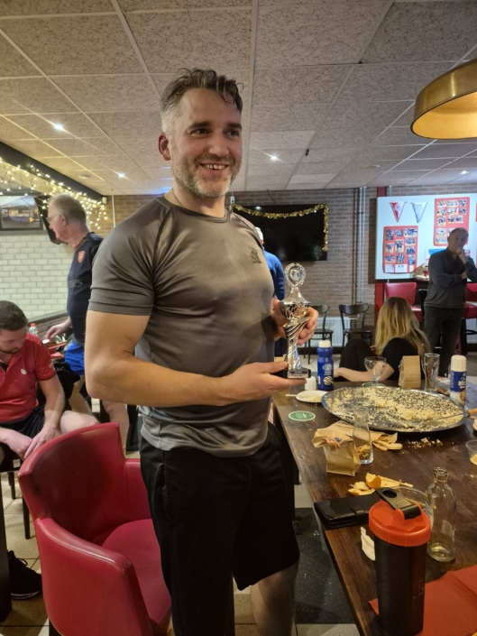Helaas kon de winnaar van het oliebollentoernooi van 2024, Andy Hof, zijn titel dit jaar niet verdedigen. Dat er een nieuwe winnaar zou komen was dan ook bij de start van het toernooi al bekend. Na en avond vol sportieve strijd was duidelijk wie er dit jaar met de eer ging strijken: