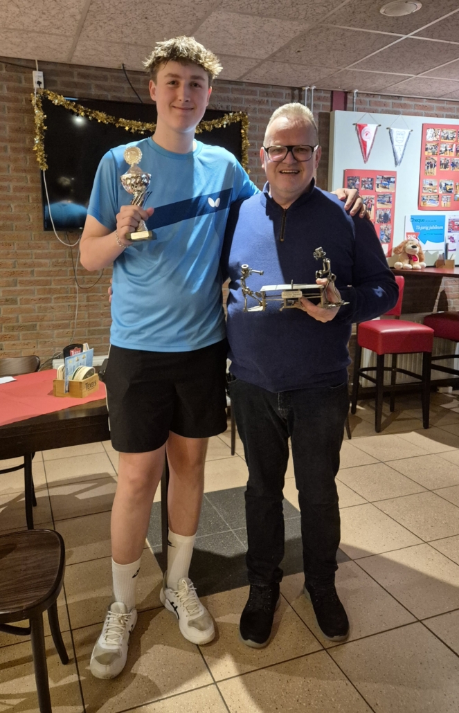 In de strijd om de derde plaats moest Gina het met 1-2 afleggen tegen Paul, waarna de avond werd afgesloten met een zinderende finale tussen Robert en Daan. Na drie sets bleek Daan de sterkste. Voordat zijn naam op de wisseltrofee wordt bijgeschreven mag hij er eerst een jaartje thuis mee pronken. Voor de nummers 1 tot en met 3 was er tevens een fraaie beker.
